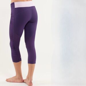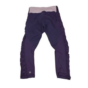 Lululemon Run: In The Sun Crop pants Size 4 Zip Pockets Low Rise Ruching Purple