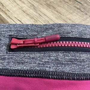 Lululemon Run Inspire Crop Gray Pink Leggings Back Zip Pocket Size 6
