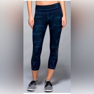 Lululemon Run Inspire Crop II Athletic Legging Camo Blue Women’s Size 4