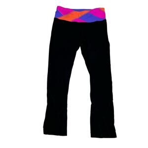 Lululemon Run Inspire Crop II Black Highlight Colorblock Size 2 Running Leggings