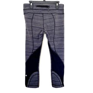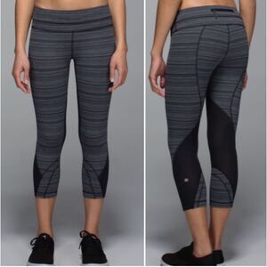 Lululemon Run Inspire Crop II Capri Leggings Cyber Stripe Gray Black Size 6