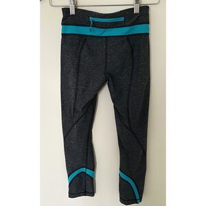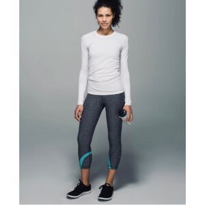 Lululemon Run Inspire Crop II Heathered Black Blue Luxtreme Crop Leggings Sz 2