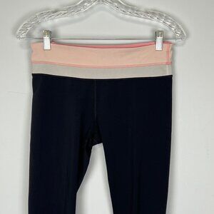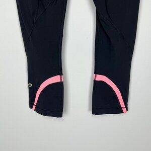 Lululemon Run Inspire Crop II Leggings Black Peach Coral Pink size 6