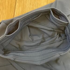 These are a pair of Lululemon Run: Inspire Crop II leggings in a women’s size 4. They’re made in a navy blue color with the classic curved seam lines and secure side pockets. The fabric is smooth, supportive, and designed for running or training. No flaws to note — the crops look and feel great overall.