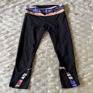 Lululemon Run: Inspire Crop II in Black/Bleacher Stripe Black Iris Flower