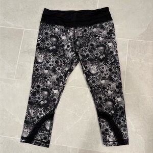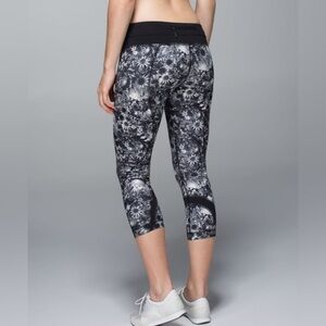 Lululemon Run Inspire Crop II in Flowabunga Black Angel Wing Size 10