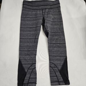 Lululemon Run Inspire Crop leggings Cyber Stripe Deep Coal Black size 6