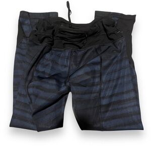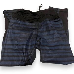The Lululemon Run Inspire Crop Luxtreme in size 6 is a pair of athletic pants designed for active women. These cropped pants feature a drawstring closure and a striped pattern in blue color, making them stylish and functional for activities like gym training and running. With a fit labeled as athletic, these Lululemon pants are made from Luxtreme fabric, known for its performance qualities, and are ideal for workouts and jogging sessions.