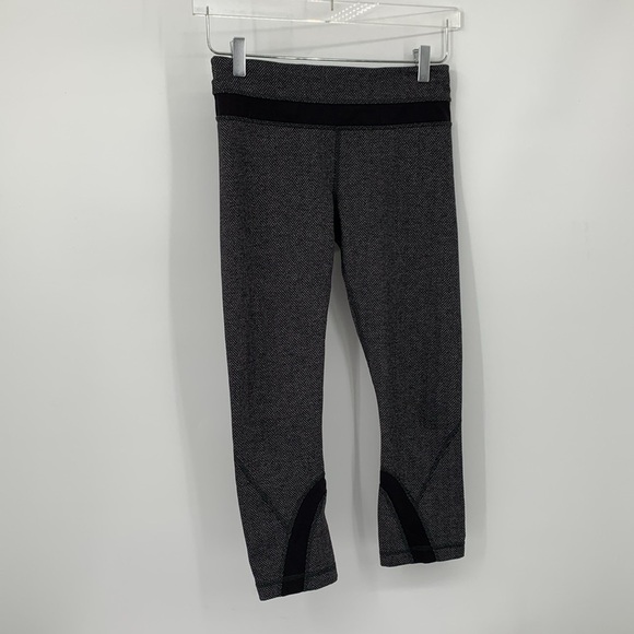 Lululemon Run Inspire crop leggings gray black herringbone chevron yoga active 6