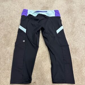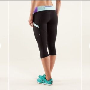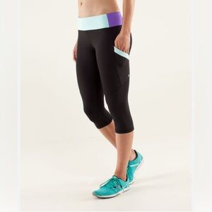 Lululemon Run: Mod Moves Crop Black / Aquamarine / Power Purple size 6