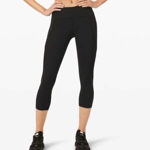 Lululemon Run Off Route Mid Rise Crop 21" Black size 4 running preppy gym