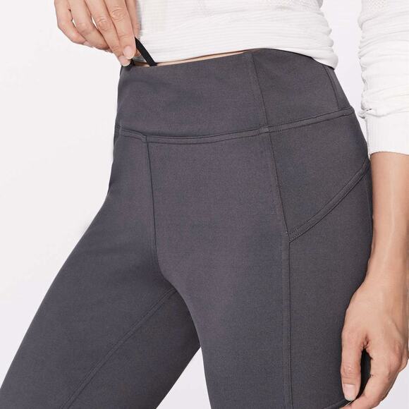 Lululemon Run On Joggers in a Dark Carbon Gray color. Stretchy and breathable fabric. Little zip pocket on pant leg and another pocket in the back waistband. In overall excellent pre-owned condition. No visible flaws. Original price $108. Please message me with any questions!