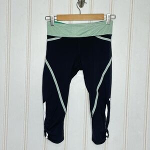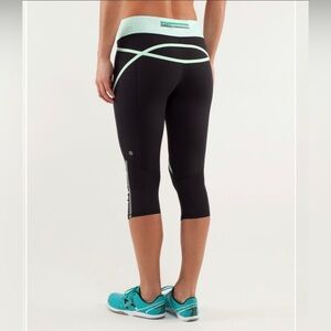 Lululemon Run: Pace Crop Black Petit Dot Fresh Teal 626