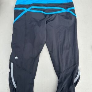Lululemon Run Pace Crop Black and Bright Blue - size 6 - excellent condition