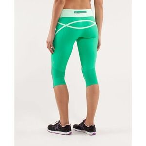 Lululemon Run Pace Crop Leggings 4 Very Green Fresh Teal Mid Rise Capri