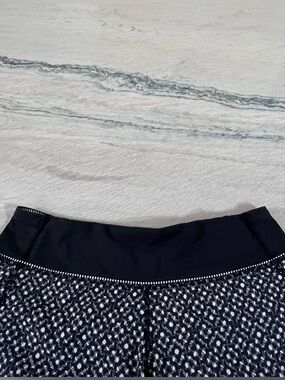 Lightweight athletic shorts with a stretch waistband. Subtle geometric all-over pattern. Breathable fabric for workouts and runs. Trim detail along hem for a polished look.