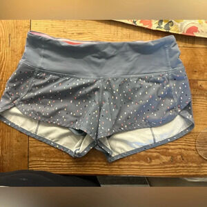 ! Lululemon Run Speed Shorts Block-It Pocket Confetti Cake Multi Blue Deni…