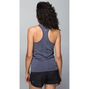Lululemon Run Swiftly Tech Fitted Tank Top Heathered Cadet Blue Striped 8