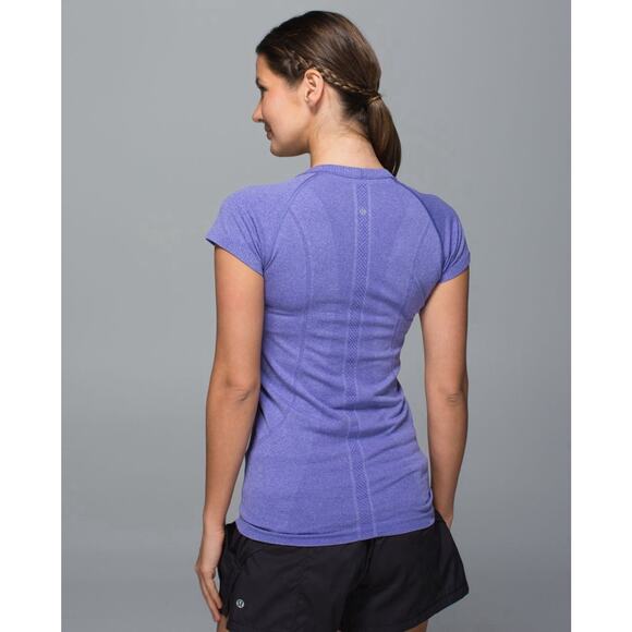 Lululemon Run Swiftly Tech Sz 8 Short Sleeve Scoop Neck in Heathered Purple