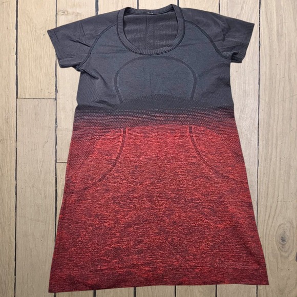 Lululemon Run Swiftly Tech Top Womens Red Ombre Short Sleeve Scoop Athletica Gym