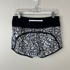 Lululemon Run Times Short 4 Way Stretch 4” Brushed Animal White Black