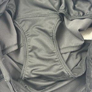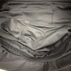 Black athletic shorts with a liner, in good condition.