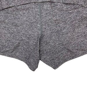This Lululemon women's Run Times Short makes a statement due to it's pull-on fit, drawcord, built in briefs, logo placement, waist pockets, back zipper pocket, quick drying, sweat-wicking, mid rise and gray/black design.