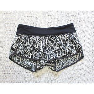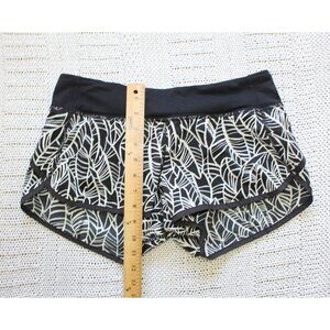Lululemon Run Times Speed Black and White Women shorts Size 6 Leaf Print Sport