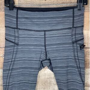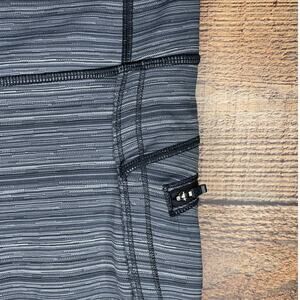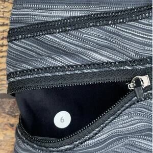 Lululemon Run Top Speed Crop Leggings. Size 6. Style# W6E88S. Color ~ Cyber Stripe Deep Coal Black. Curved hem. Multiple pockets. Excellent condition. Measurements are in the pictures.