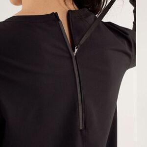 Stay cozy in this Lululemon Warm Up Crew pullover, crafted with long sleeves, a crew neckline, and a boxy silhouette. The soft black top features mesh paneling under the arms for breathability along with a high-low hem and side slits for ease of movement. Perfect for lounging or layering up after a workout, the zipper detail with reflective strip adds function and safety for wearing out at night. Whether you're headed to the gym or just chilling at home, this versatile pullover from Lululemon combines comfort and style.