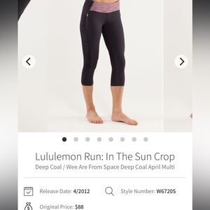 Lululemon Run in the Sun Crop Size 2 Deep Coal/We are from space April multi