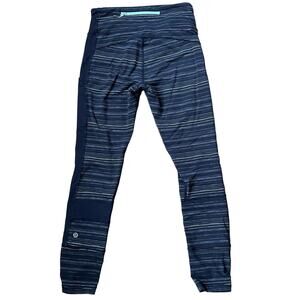 Lululemon Run the World 7/8 Tight Leggings Size 4 Cyber Stripe Naval Blue Black