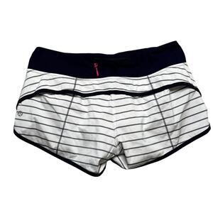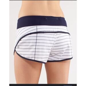 Lululemon Run women Sz 6 Speed ShortQuiet Stripe White Deep Indigo / Gym / Y2K