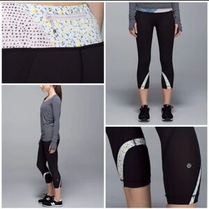 Lululemon Run Inspire Crop II Sz 4 In Black / Wi14 Quilt 18 / Fresh Fleur Neutral Blush Split Pea