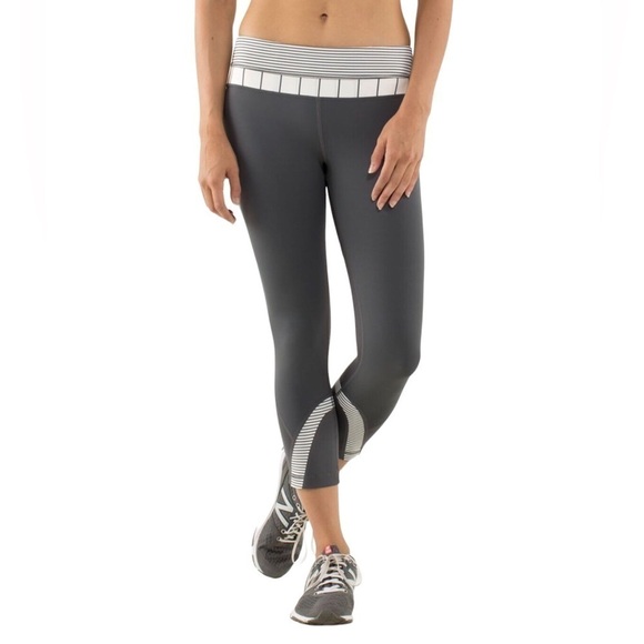 Lululemon Run:Inspire Crop ll Soot Light/Hyper Angel Stripe Leggings Size-6 EUC