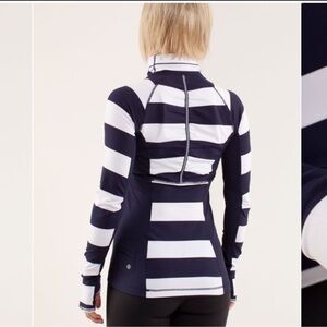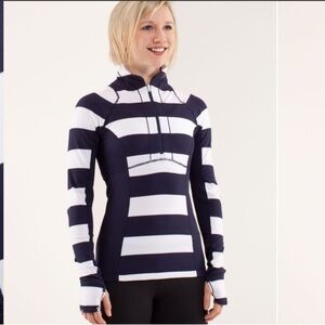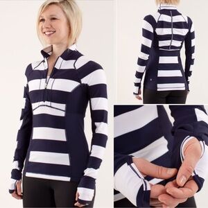 Lululemon Run:Switch Back 1/2 Zip Wide Bold Stripe White Deep Indigo Dee…