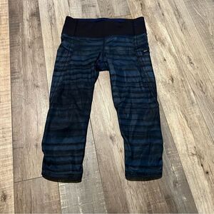 Lululemon Run Top Speed Cropped leggings in good pre-owned condition. These crops were made with a curved hem so we can lunge, run and stretch with ease. Smooth, low-friction fabric helps keep our workouts stress and chafe-free. Luxtreme® fabric is sweat-wicking and four-way stretch