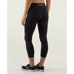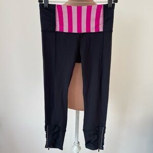 Lululemon Runday Crop Black Micro Macro Stripe Raspberry Pink Leggings EUC Sz 6