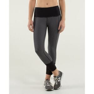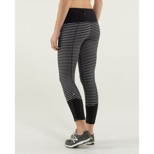 Lululemon Runday Crop First Release)Striped Running Leggings Black/White 4