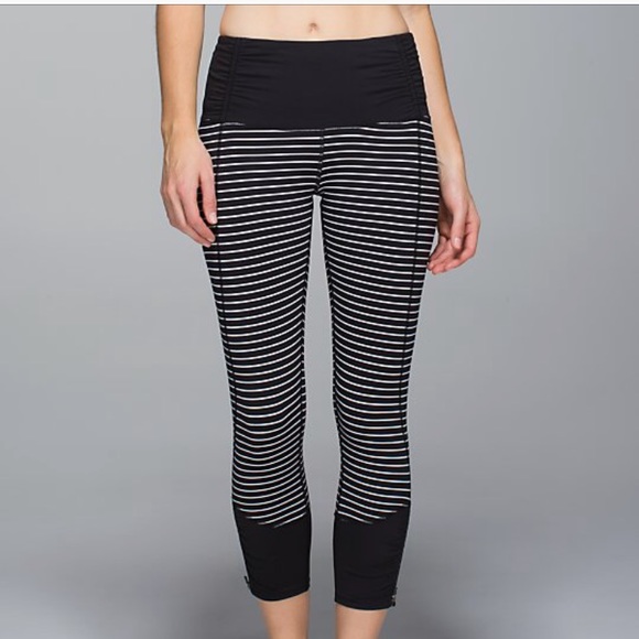 Lululemon Runday Crop Parallel Stripe Blk/Wht Sz2