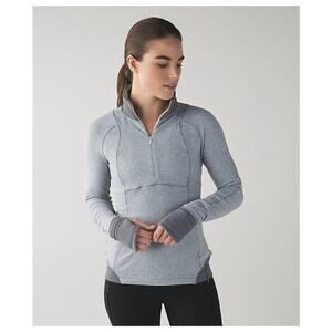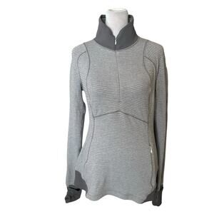 Preowned Lululemon Runderful 1/2 Zip Mini Check Pique White Heathered Slate Size 6. Well taken care of pullover with no size tags. Please refer to measurements and photos. Flat measurements.