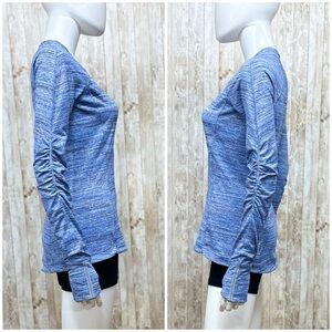 Thumbholes and cuffins help keep sleeves down and hands warm. Body Skimming, hip length. Secure back pocket to store your essentials. Approx 21.5” long in front, 23” long in back (measured center front to hem), 16” armpit to armpit, 23” armpit to cuff. Excellent pre-owned condition. Item #3522