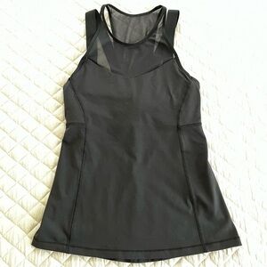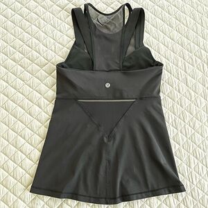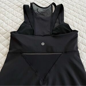 Like-new Lululemon Running In The City black tank. Luxtreme fabric which is sweat-wicking and four-way stretch. Mesh fabric on the neck upper back area for ventilation and coverage. Built in bra, but does not come with bra pads.