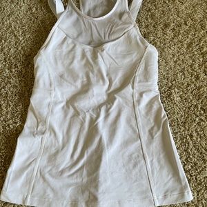 Lululemon Running in the City Mesh Tank Size 6, White luxtreme fabric tank with mesh detailing Built in Sports Bra Reflective detailing No flaws Excellent Condition Bought from another Posher.