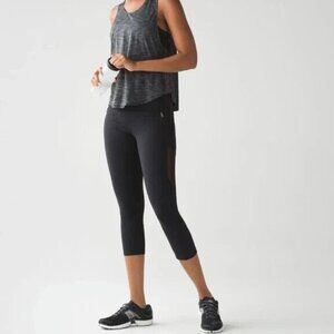 Lululemon Rush Hour 21" Crop Black Women 4 Pockets Luxtreme Mesh Run Gym Yoga