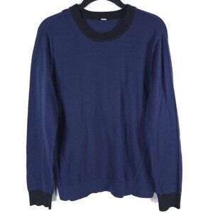 Lululemon SILK Blend Sweater Crew Neck Pullover Knit Ringer Blue Black Size 10