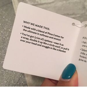 This rare and super soft Sage Scarf Wrap is the perfect blend of Pima Cotton! You'll want to snuggle in it all day! Which is perfect because it can be worn oh so any ways (Scarf, wrap, draped, over your head, socially acceptable blanket)! Slots for your arms to come through in the sides, as shown. This blend is rare! The pattern is a heathered cream and gray.