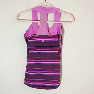 Lululemon Scoop Neck Mesh Back Tank Top Workout Pink Grey size 6