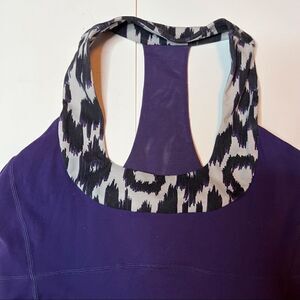 Lululemon Scoop Neck Tank, Animal Print. Rare and hard to find. Size 6. Full bra insert with support. Excellent pre-owned condition - no tears, holes, stains or pilling.