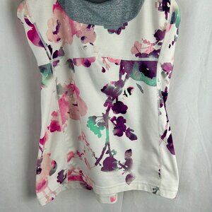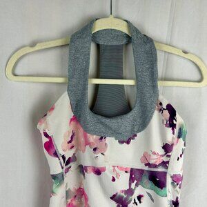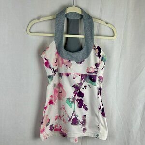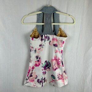 Lululemon Scoop Neck Tank Women 6 White Gray Blurred Blossoms Floral Athleisure